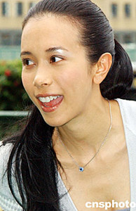 香港歌星莫文蔚,六月十七日出席在香港跑馬地馬場(chǎng)舉行的“2003/2004香港賽馬會(huì)冠軍人馬頒獎(jiǎng)典禮”打氣活動(dòng)。中新社記者:錢興強(qiáng)
