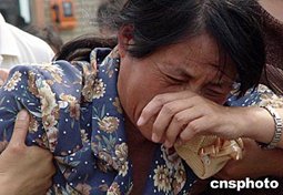 圖:小浪底翻船事故遇難家屬認(rèn)親工作開始 (2004-06-24)
