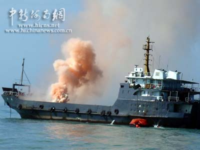 上午九點(diǎn)正,搜救演習(xí)指揮船粵海鐵上空升起三顆耀眼的信號彈,預(yù)先放置在南海指定海域“海難遇險船”“南海號”甲板上冒出紅色和白色兩種煙霧,駐守在南海附近的中國搜救隊(duì)伍得到求救信號:“海難”發(fā)生了。