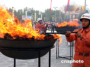 寧夏開展禁毒宣教一批毒品被集中焚燒