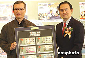 其后,蔣任宏署長向王玉仁少將及郵票設(shè)計師何志仁致送鑲有這套特別郵票及首日封的框架,以作留念。
