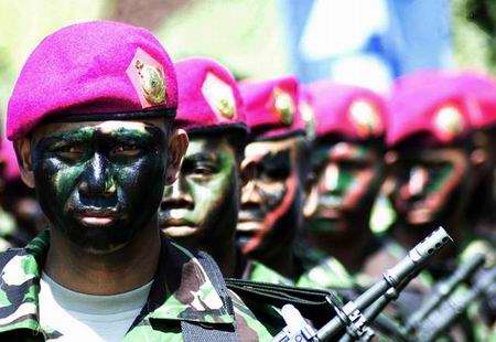 中新網(wǎng)7月1日電 印度尼西亞將于7月5日舉行總統(tǒng)大選。目前,在5名候選人中有兩名印尼前軍方高級(jí)將領(lǐng)。不過,政治分析家認(rèn)為,即使他們其中的一個(gè)能夠最終獲得勝利,也并不意味著印尼將回到以前。圖為來自印尼海軍陸戰(zhàn)隊(duì)的精英們結(jié)束了在東爪洼省錦石地區(qū)的精英訓(xùn)練之后,正在展示他們的新技能。(春風(fēng))