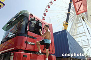 首次進(jìn)入北京的世界最大“移動(dòng)游樂場”——環(huán)球嘉年華原定于七月二日在國際雕塑公園向市民正式開放,但七月一日突降的大雨致使開放時(shí)間推遲。圖為工作人員在進(jìn)行最后的緊張調(diào)試。作者:徐曦弋