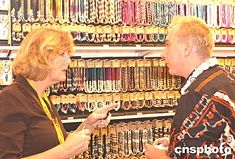 2004年香港夏季禮品、家庭用品及玩具展6日在會(huì)展中心開(kāi)幕,展覽會(huì)吸引了1300家來(lái)自19個(gè)國(guó)家及地區(qū)的公司參加,泰國(guó)的插花吸引著參觀者。中新社記者:趙振清  參加2004年香港夏季禮品、家庭用品及玩具展的菲律賓工藝品贏得商人關(guān)注。中新社記者:趙振清