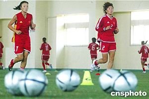 七月十四日,中國女足的姑娘們在上海東方綠洲訓(xùn)練基地積極備戰(zhàn),為即將到來的雅典奧運會做最后的沖刺。作者:湯彥俊