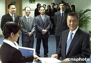 十五日下午,澳門特別行政區(qū)行政長官何厚鏵到選舉協(xié)調(diào)中心領取參選提名表,隨后舉行記者會發(fā)表參選聲明。作者:梁永強