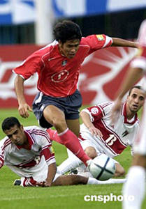 7月19日晚,2004年亞洲杯B組比賽在濟(jì)南開戰(zhàn),歷史上首次進(jìn)入亞洲杯決賽圈的約旦隊(duì)迎戰(zhàn)2002年世界杯四強(qiáng)之一的韓國(guó)隊(duì)。中新社記者:武仲林