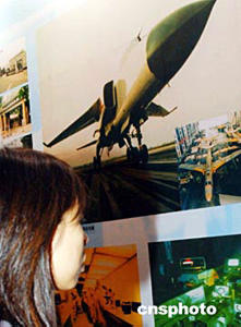 2004西安--香港經(jīng)濟合作項目推介會,七月二十日在香港會展中心開幕,是次推介會主要以落實中央CEPA安排為契機,充分展示“人文西安--科技西安--現(xiàn)代西安”的新形象與發(fā)展前景。圖為推介會舉辦的圖片展上,介紹由西安飛機制造公司總裝的全天候超音速轟炸機“飛豹”。作者:錢興強