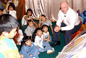迪斯尼手牽手講故事時(shí)間與小朋友共享夏日讀書樂活動(dòng)20日在香港舉行﹐十五位四至六歲的小朋友聚首一堂﹐在香港迪斯尼樂園集團(tuán)行政總裁羅彬深先生帶領(lǐng)下﹐一起跳進(jìn)迪斯尼的繽紛童話世界﹐籍此培養(yǎng)小朋友的讀書興趣。作者:趙振清