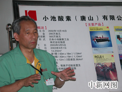 “網(wǎng)上河北行”采風(fēng)團(tuán)的記者21日下午走訪了唐山高新技術(shù)開發(fā)區(qū)中的日資企業(yè)——小池酸素有限公司,該公司成立于2002年10月,主要生產(chǎn)銷售各種焊接切割用機(jī)械、器具、裝置及相關(guān)機(jī)械等。