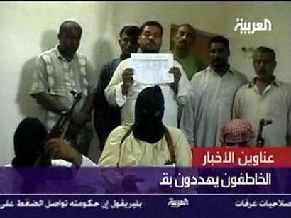 在阿拉伯電視臺(tái)當(dāng)天播放的一段錄像帶中,這6名被劫持的卡車司機(jī)站在3名坐著的蒙面武裝人員后面,一名人質(zhì)手持一張印有他們姓名、國(guó)籍、護(hù)照號(hào)以及卡車牌照號(hào)等內(nèi)容的紙張。