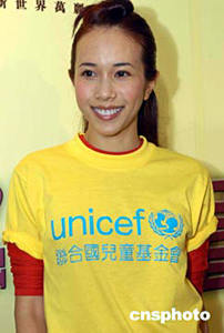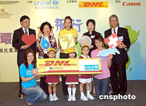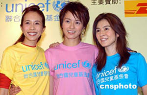 聯(lián)合國(guó)兒童基金會(huì)“教育大使”楊采妮7月22日在香港出席聯(lián)合國(guó)兒童基金會(huì)舉行之《寧夏童心夢(mèng)飛行》記者會(huì),楊采妮與梁詠琪、莫文蔚將攜手于八月前往內(nèi)地寧夏地區(qū)親善探訪當(dāng)?shù)貎和。?lián)合國(guó)兒童基金會(huì)香港委員會(huì)主席馮慶彪(右一)、副主席陳方安生(左二)與三位大使聯(lián)同贊助商舉行儀式,并呼吁各界踴躍捐款。作者:鄧慶樂(lè)