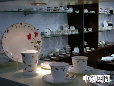 第二屆“網(wǎng)上河北行”記者一行22日來到唐山市海格雷陶瓷有限公司參觀,該公司生產(chǎn)的骨質(zhì)瓷吸引了記者們的目光。(秦欣攝)