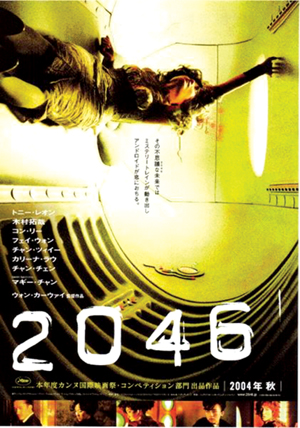 雖然木村在《2046》占戲不多,但始終是“地頭蟲”,加上與木村演未來(lái)世界情侶的王菲在日本知名度甚高,日本方面自然以兩人做宣傳重點(diǎn)。其中一款黑白海報(bào),木村與王菲都閉起雙眼頭碰頭,木村用手輕攬王菲,意境凄美;另一款彩色海報(bào)則只有王菲,穿著超時(shí)空服裝坐在“機(jī)艙”內(nèi),視覺上令王菲的身形非常突出。