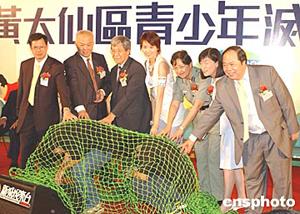 香港黃大仙區(qū)青少年滅罪嘉年華24日在鉆石山荷里活廣場(chǎng)舉行﹐歌星梁詠琪與來(lái)自社會(huì)各界人士出席并現(xiàn)場(chǎng)表演捉拿罪犯的場(chǎng)面。作者:趙振清
