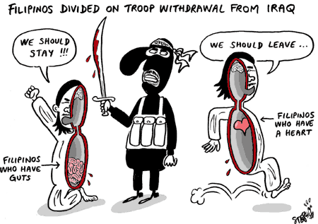 中新網(wǎng)7月25日電 在總統(tǒng)阿羅約的命令下,為協(xié)助解救在伊拉克被綁架的菲國(guó)人質(zhì)克魯茲,菲律賓撤回了駐扎在伊拉克的維和部隊(duì),盡管這一決定使美國(guó)深感失望。