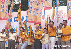 中新社香港七月二十五日電 被此間輿論公認(rèn)為香港三大政黨之一的民建聯(lián)今天表示,若要實(shí)現(xiàn)特區(qū)行政長(zhǎng)官和立法會(huì)在二O一二年“雙普選”,需要滿足四個(gè)條件。民建聯(lián)下午舉行誓師大會(huì),場(chǎng)面熱烈,再度喊響其參選口號(hào)──“穩(wěn)定為民主,和諧建未來(lái)!泵窠(lián)主席馬力自信“會(huì)爭(zhēng)取到越來(lái)越多市民的支持”。