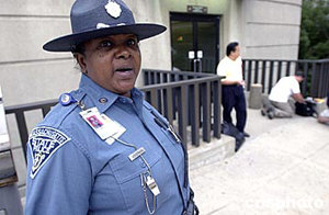 民主黨大會(huì)當(dāng)?shù)貢r(shí)間七月二十六日在波士頓開(kāi)幕,為確保大會(huì)安全,自上周五以來(lái),麻州州警取消休假,每日工作13小時(shí),麻州羅根機(jī)場(chǎng)更是警察云集。圖為便衣警察在搜查一位自拉斯維加斯登機(jī)的攜帶毒品的男性嫌疑人,非裔警官阿克嫚叮囑記者不要拍到便衣警察的臉。作者:陳鋼