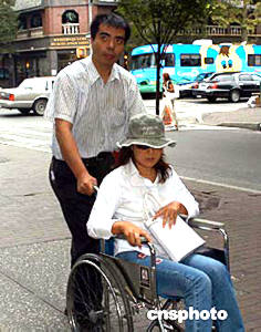 當(dāng)?shù)貢r(shí)間七月二十七日中午,在美國尼亞加拉瀑布區(qū)游玩時(shí)遭美國移民局警察毆打的中國游客趙燕前往律師樓填寫“紐約州犯罪受害人福利申請表”,這是趙燕被毆后在尋求賠償?shù)牡缆飞线~出的第一步。中新社記者:趙海燕
