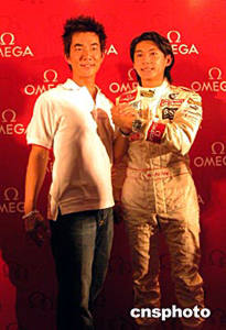 七月二十七日,世界上首位駕駛一級方程式賽車的中國車手董荷斌與著名歌手任賢齊聯(lián)袂展示歐米茄超霸賽車系列手表。從當(dāng)天開始,董荷斌和世界頂級賽車手舒馬赫并列成為歐米茄賽車名人大使。作者:韓藝冰