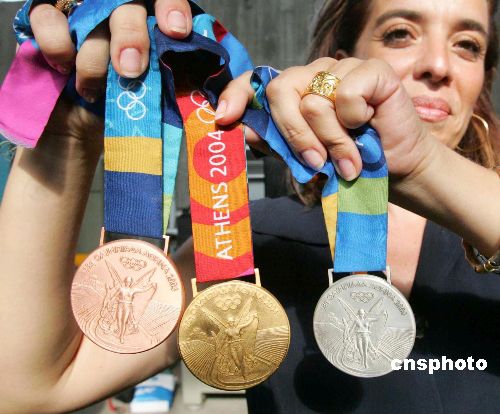 7月26日,2004年雅典奧運(yùn)會的獎(jiǎng)牌揭開神秘面紗。據(jù)悉,目前已經(jīng)約有3000枚獎(jiǎng)牌投入制造。Ic/cnsphoto 攝