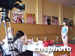 炎炎夏日中,位于北京舞蹈學院的初試賽場似乎令人感覺清涼。上百名青春佳麗身著泳裝,落落大方秀出自己的曼妙身材;但更重要的是,她們需要依次通過短短一分鐘的自我介紹,在談吐舉止中展示自己的內(nèi)在美。
