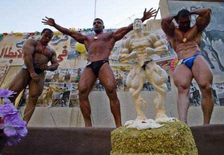 原來,巴格達(dá)有一座以前健美冠軍施瓦辛格名字命名的“阿諾光榮”體育館,這次健美比賽——伊戰(zhàn)后的伊拉克首次全國健美比賽(男子)——就是在該體育館的一塊露天場地上進(jìn)行的。