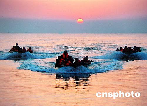中國海軍精銳兩棲部隊(duì)今夏在南海島嶼演練沖鋒舟快速搶灘,以小股精兵出奇制勝。作者:龍運(yùn)河