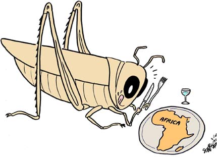 中新網(wǎng)7月31日電 蝗蟲(chóng)今年在非洲大陸肆虐,嚴(yán)重影響了非洲的農(nóng)業(yè)生產(chǎn)。7月底,來(lái)自非洲馬格里布地區(qū)和西非荒漠草原地區(qū)的非洲9國(guó)的農(nóng)業(yè)部長(zhǎng)在阿爾及爾集會(huì),并制定了緊急掃蝗方案,要堅(jiān)決擊退貪吃蝗軍的進(jìn)攻。(來(lái)源:法《國(guó)際報(bào)刊》)