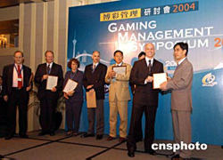由澳門大學(xué)主辦的“博彩管理研討會2004”,三十一日在澳門凱悅酒店舉行,十二位來自世界各地的專家、學(xué)者就博彩業(yè)之經(jīng)濟(jì)、社會及法規(guī)等問題發(fā)表了專題發(fā)言。作者:梁永強(qiáng)