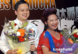 瘋魔全球的另類偶像孔慶翔與家燕姐,三十一日在澳門摩卡角子機娛樂埸舉行輝煌派對,為他們八月份開拍的電影《我阿媽發(fā)仔瘟》作宣傳。作者:梁永強