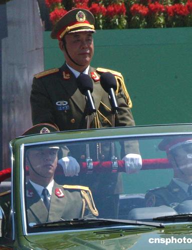 8月1日,香港回歸七年來,駐港部隊(duì)今天首次公開閱兵,包括政府高官、社會(huì)名流和眾多第二屆立法會(huì)議員在內(nèi)的逾一萬(wàn)五千名香港市民,在新界石崗軍營(yíng)親睹了陸?杖娪馊Ч俦鴧⒓拥年(duì)列操演。