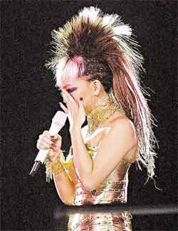 張惠妹昨天唱到第二首歌《站在高崗上》,原本是一首開(kāi)心的歌曲,她唱著唱著眼淚卻不自覺(jué)地掉下來(lái)。由于這陣子實(shí)在有太多的感受,才到第四首歌《聽(tīng)海》,阿妹激動(dòng)大哭,泣不成聲,臺(tái)下歌迷大聲為她加油,叫她不要哭!