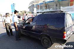 (當(dāng)?shù)貢r(shí)間)二○○四年八月二日上午,多名希臘警察在雅典奧運(yùn)會(huì)主會(huì)場嚴(yán)格檢查進(jìn)入該地的人員車輛,以加強(qiáng)會(huì)場安保。中新社記者:任晨鳴