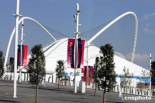 雅典奧運會自行車比賽場館緊鄰主體育場,造型別具一格。中新社記者:任晨鳴