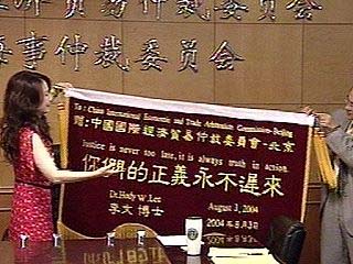 據(jù)臺(tái)灣媒體發(fā)自北京的報(bào)道說(shuō),李敖送給在北京因?yàn)楹么蚬偎径虺雒?hào)的李文的錦旗上,寫著“你們的正義永不遲來(lái)”,來(lái)恭賀李文在北京打贏了第一場(chǎng)官司。