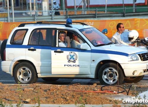 希臘雅典奧運會即將開幕,(當?shù)貢r間)二○○四年八月三日清晨,眾多希臘警察開始一天的街頭巡邏執(zhí)勤。中新社記者:任晨鳴