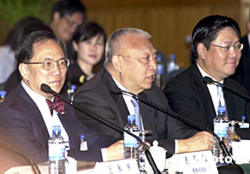 中新社廣州八月三日電(記者陳國華)三日下午,香港特首董建華乘直通車抵達(dá)廣州,參加四日在廣州舉行的粵港合作聯(lián)席會(huì)議第七次會(huì)議。廣東省省長黃華華在董特首下塌的飯店迎接其一行的到來。