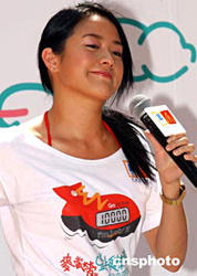 香港麥當勞4日在銅羅灣時代廣場舉行早餐誓師大會﹐呼吁香港人身體力行﹐踏上健康路﹐每天步行一萬步﹐影星林嘉欣出席﹐并與眾人一起﹐步行100步﹐踏上健康路。作者:趙振清