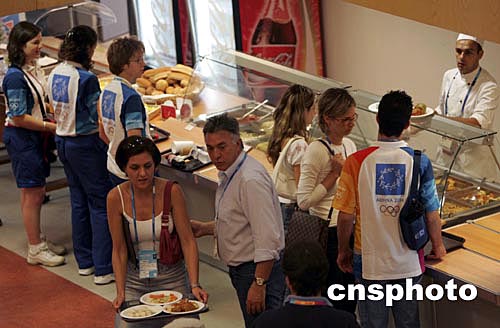 在雅典奧運會主新聞中心內(nèi),開設眾多風味的美食供世界各地的記者選擇,只不過都是“西餐”,而沒有中餐等東方風味飲食。中新社記者:任晨鳴