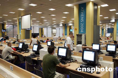 距離奧運會開幕尚有近一個星期,各國記者已趕赴雅典,當(dāng)?shù)貢r間八月八日,記者們進(jìn)入雅典奧運會新聞中心開始工作。中新社記者:毛建軍