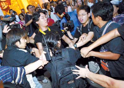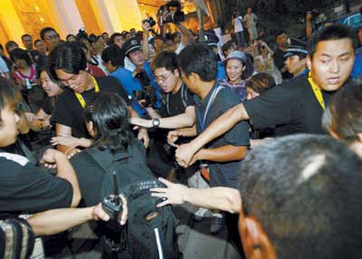 中新網(wǎng)8月9日電 據(jù)信報報道,昨天下午,今年夏天最受矚目的華語大片《千機變2花都大戰(zhàn)》在北京舉行了盛大的全球首映禮。官司纏身的英皇老總楊受成,導演梁柏堅、主演房祖明、TWINS、吳彥祖、甄子丹、范冰冰、瞿穎等均參加了此次盛會,遲到了3個小時的房祖明也因其良好的態(tài)度得到了記者的諒解。原定會出席為兒子助陣的成龍、林鳳嬌夫婦最終沒有出席,只有成龍的父親、房祖明的爺爺來到了現(xiàn)場。跟《十面埋伏》一樣,《千機變2花都大戰(zhàn)》的首映禮也沒放電影。而昨晚在民族宮舉行的慶祝酒會上,香港記者與保安及英皇工作人員發(fā)生沖突,來了場真人版“北京大戰(zhàn)”。