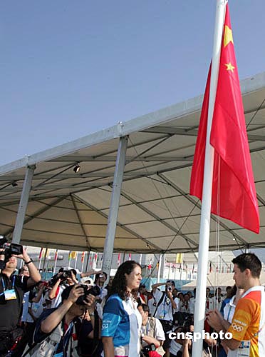 當?shù)貢r間8月9日上午,中國奧運代表團在雅典奧運村舉行隆重的升旗儀式。中新社記者:任晨鳴