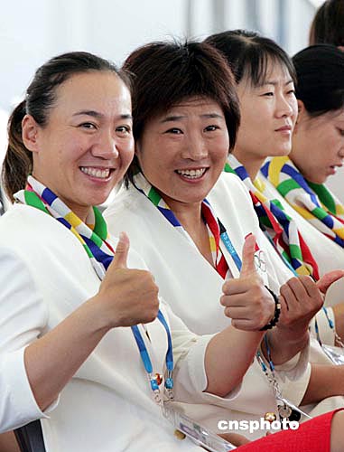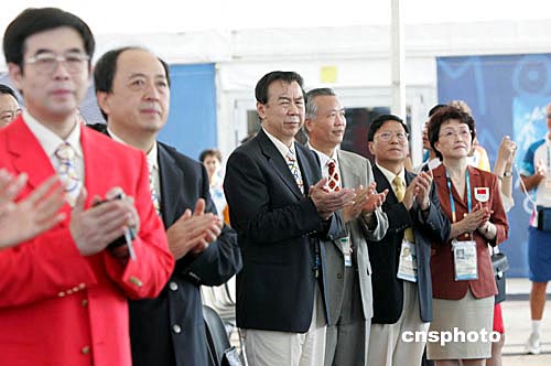 當(dāng)?shù)貢r(shí)間八月九日上午,參加雅典奧運(yùn)會(huì)的中國體育代表團(tuán)在雅典奧運(yùn)選手村舉行升旗儀式。中新社記者:毛建軍