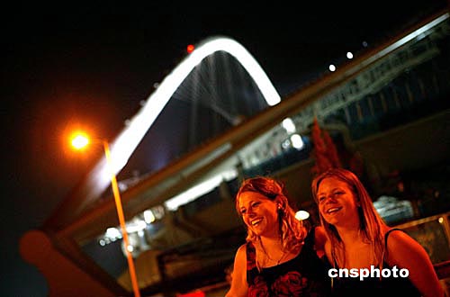 德國女生瑪瑞亞和克瑞斯汀那9日晚專程趕到雅典奧運(yùn)會主體育場前拍照留念,盡管她們無法支付昂貴的入場券,但是雅典一游已經(jīng)圓了她們的奧運(yùn)夢。中新社記者:王瑤