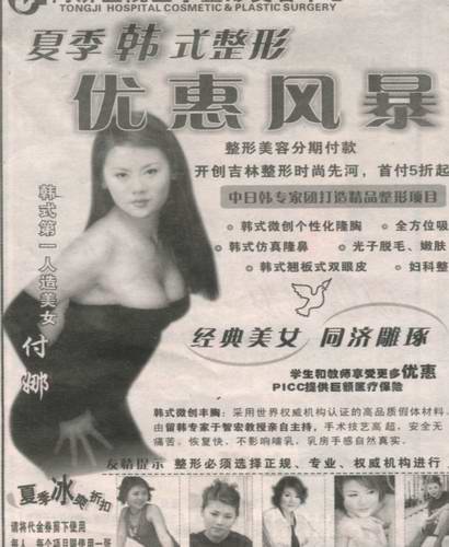 中新網(wǎng)8月12日電 據(jù)生活日報報道,在電影《手機(jī)》里游刃有余地同時飾演呂桂花、牛彩云兩個性格迥異角色的青年演員楊欣,因長相酷似鞏俐而被稱作“小鞏俐”,天生一副90、60、90三圍的火辣魔鬼身材。楊欣做夢也想不到,吉林省長春市某醫(yī)院醫(yī)學(xué)整形美容中心,鬼斧神工般地給她的代表性照片實(shí)施了“換頭術(shù)”,用楊欣的火辣身材和該中心“韓式第一人造美女”付某的頭臉,在當(dāng)?shù)匕l(fā)行量相當(dāng)大的一份報紙上做起了廣告。