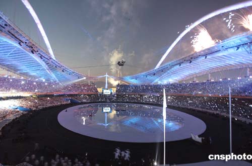 “歷史年輪”、“生命之章”、“橄欖樹”等幾個華彩篇章隨后而至。整個開幕式文藝表演中,希臘這個愛琴海邊的島國將水與火、人與神的美妙和諧關(guān)系演繹到了極致。