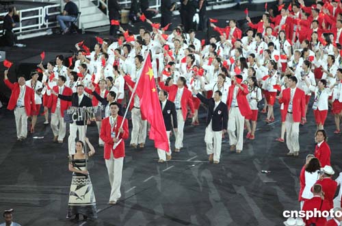 代表團(tuán)入場是開幕式的一幕高潮。