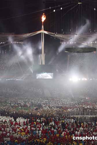 雅典奧運(yùn)會主體育場的熊熊圣火將伴隨各國運(yùn)動健兒參加庫期十六天的各項比賽。