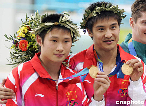 在今天的比賽中,田亮和楊景輝在第一組動(dòng)作中以五十五點(diǎn)八排名第二,從第二組動(dòng)作開始,他們發(fā)揮了極高的水準(zhǔn),以完美的表現(xiàn)征服了裁判和觀眾,一路領(lǐng)先并最終站到了最高領(lǐng)獎(jiǎng)臺(tái)上。
